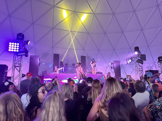 The Dome Stage was home for those who wanted to get their groove on with acts including "Mood Swing and Chevy Bass" who almost blew the roof of this covered gigantic igloolike structure. Their set included the always entertaining guitar and vocals by Mark Woodyard, with Dizzy McEvoy on the keytar, paired with their blistering DJ set.